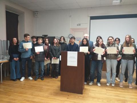 Les diplômes ont été remis individuellement à plusieurs élèves, qui se sont distingués par leur grand investissement et un comportement exemplaire, ou encore par la mention "très bien avec les félicitations du jury".